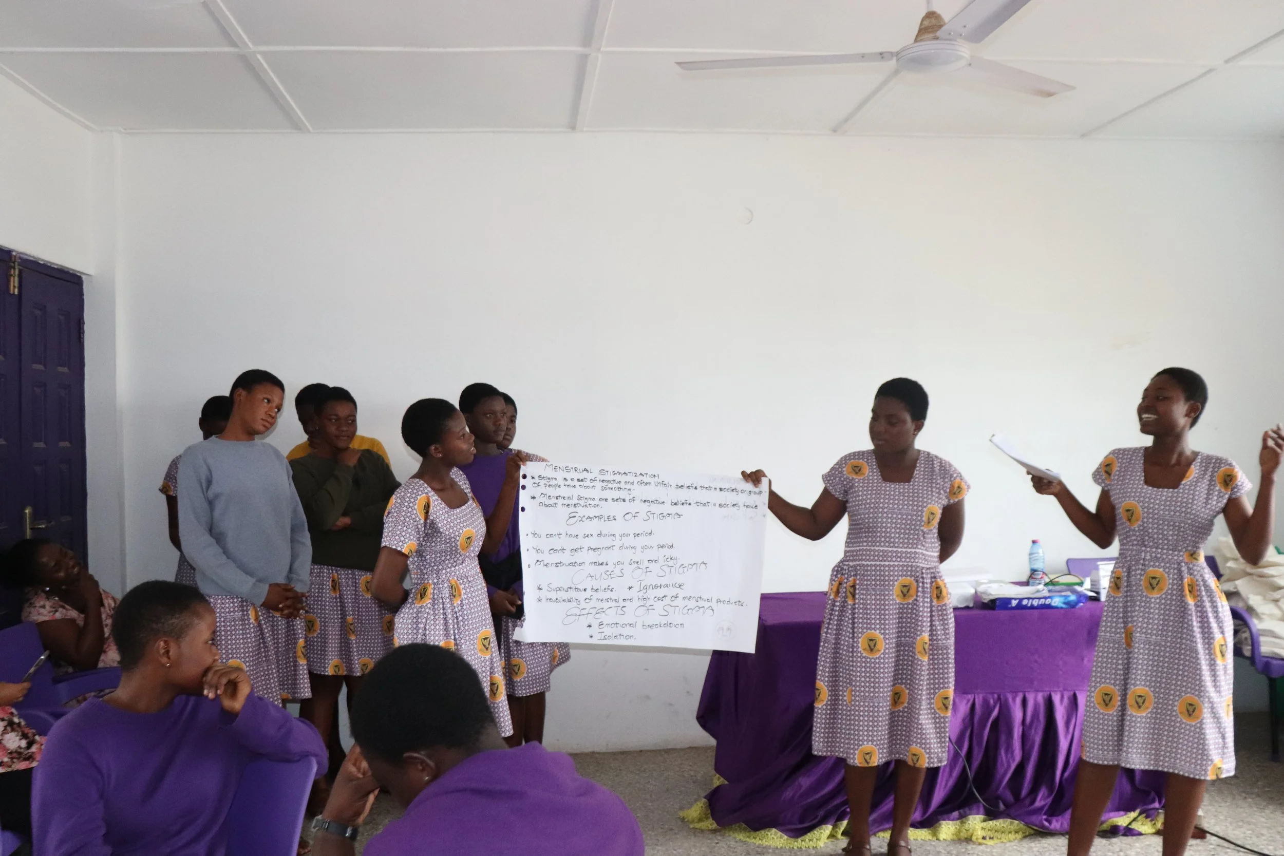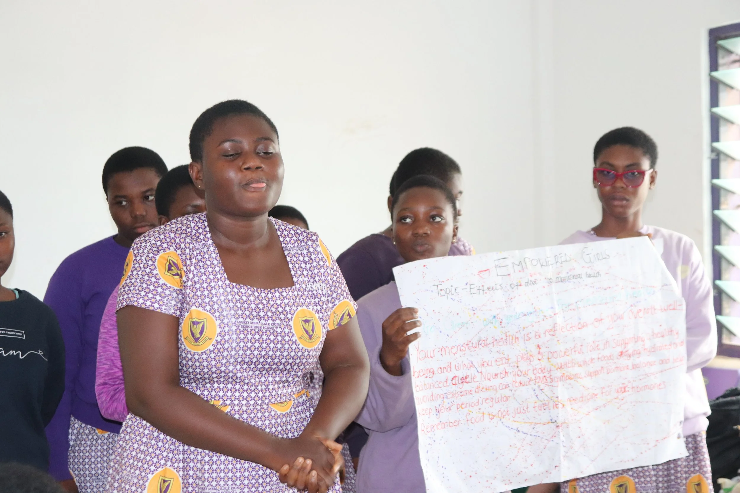 For one week, our AMI teachers and founder, Stacey Fabo, Dr. Ginika Ejimgini, and Oge Ogbogu, respectively, volunteered with the IHCV and Cape Coast Teaching Hospital pediatrics team to host their second in-person menstrual hygiene and menstrual health workshop with girls ages 16-18. Teaching 45 students and training three teachers, we were able to go over topics of menstrual science and anatomy, and more! Students gave their final presentations on the final day, and we were blown away! From presentations on anaemia and nutrition and how it relates to menstruation to skits and songs made to educate on menstrual hygiene and advocacy, we are so proud of our students and all the work they have done in this program!